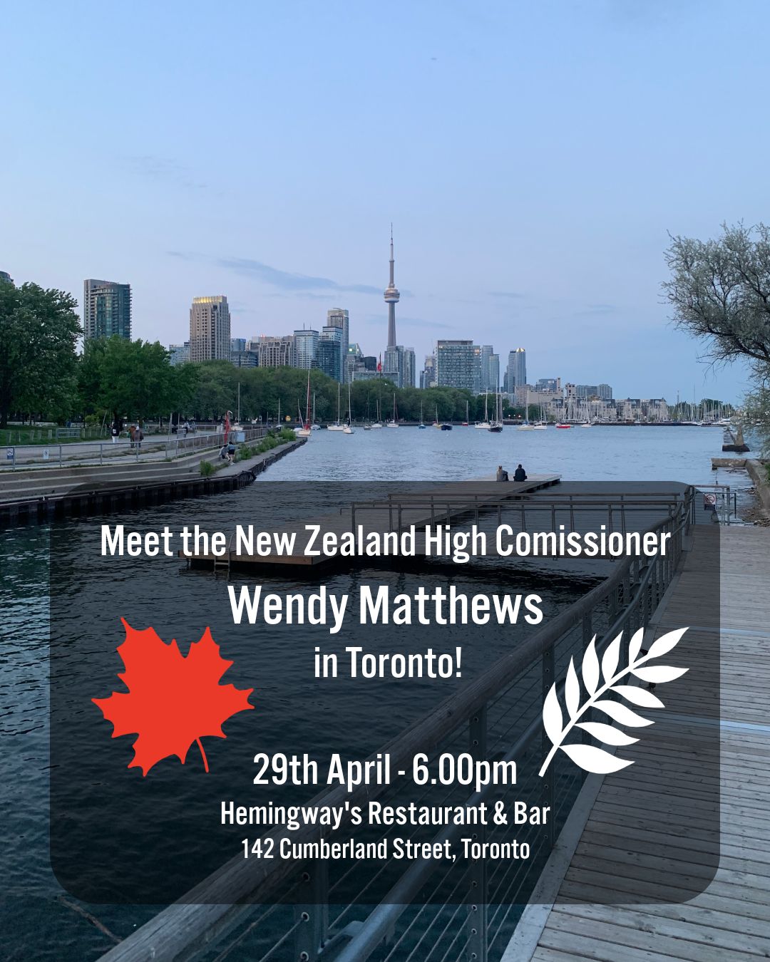 We are delighted to announce an opportunity to meet some of the team from the New Zealand High Comission in Canada, including High Commissioner Wendy Matthews. 🙌
